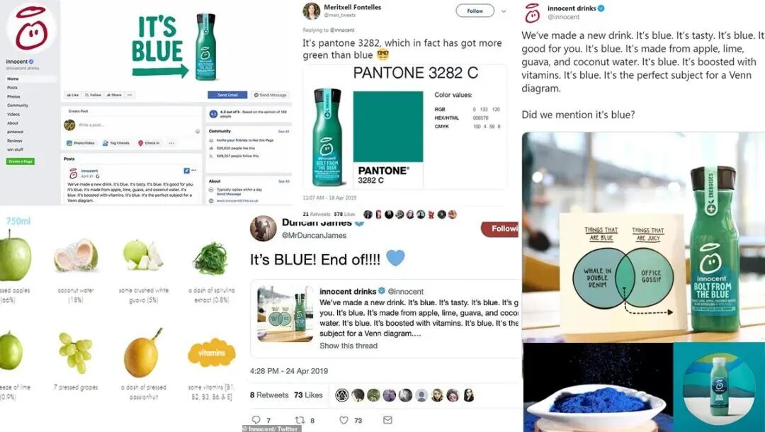 1999 年成立的 innocent,正是以「Blue Spark Super Smoothie」这款含有螺旋藻的果汁饮品打开欧洲市场:以 0.81% 螺旋藻提取物搭配苹果、番石榴基底,每瓶仅 100 大卡。2019年,innocent的年销售额达4.53亿英镑,约合43亿元人民币,产品现已覆盖英国、法国、德国、丹麦等23个欧洲国家。
